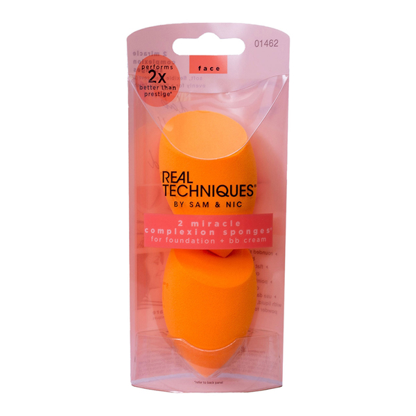 Achieve a flawless base with the Real Techniques Miracle Complexion Sponge. Created by Youtube makeup artists Sam and Nic Chapman, the 3-in-1 makeup blender features three distinct surfaces that enable you to optimise and tailor your makeup application. The rounded sides effortlessly blend large areas of the face with a 'stippling' action, whilst the precision tip perfectly conceals blemishes and targets smaller areas. The flat edge can be used to professionally blend foundation and concealer in the contours around the eyes and nose for a bright, highlighted base. Ideal for powder, cream and liquid makeup products. Achieve high performance results with a professionally smooth, blended finish. The sponge is latex-free
